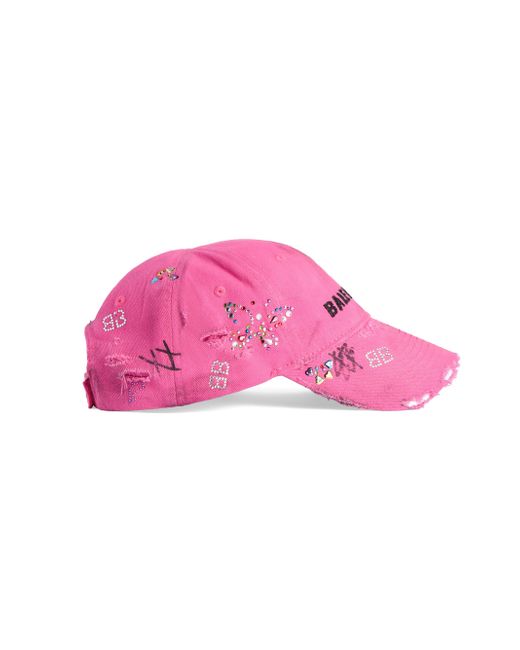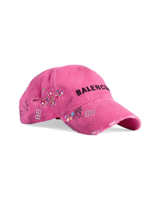 Cotton drill Classic baseball cap shape Ventilation eyelets embroidered on top Adjustable hook and loop tab at back Upcycled detailing at front Worn-out and dirty effect Balenciaga logo embroidered at front Rhinestones and scribbles allover Due to Upcycling process, all the pieces are unique Main Material: 100% Cotton Lining: 100% Cotton Embroidery: 100% Polyester Detail 1: Metal Detail 2: Glass Imported. Lsd Rtw - Balenciaga Rtw > Balenciaga > Saks Fifth Avenue. Balenciaga. Color: Pink. Size: Medium.