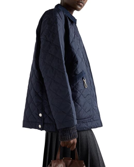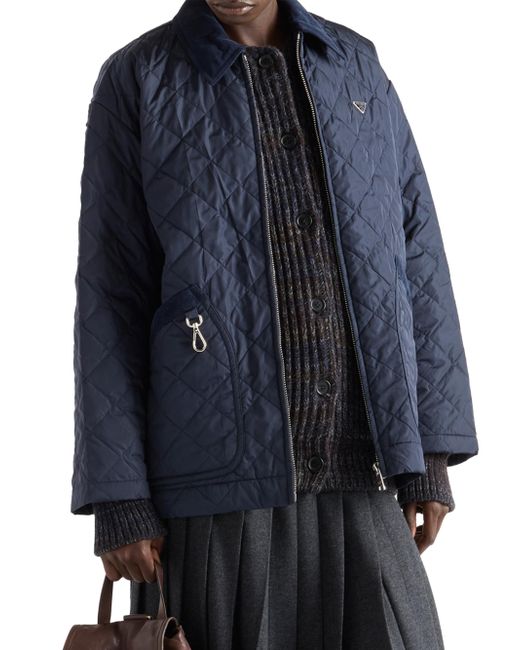 Unlined Velvet collar Long sleeves Side slits Straight cuff Zipper closure Patch pockets Enameled metal triangle logo Pressed garment Metal snap-hook on pocket Velvet collar and pocket trim Imported 100% polyamide. Lsd Rtw - Prada Rtw > Prada > Saks Fifth Avenue. Prada. Color: Blue. Size: 2.