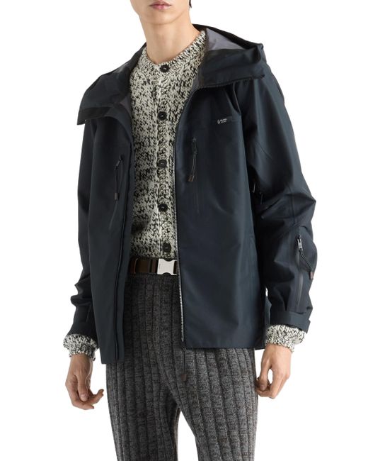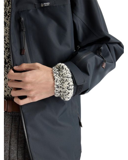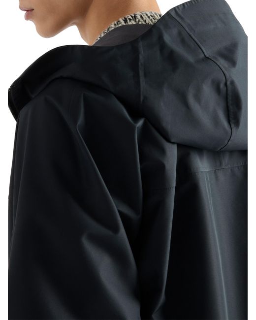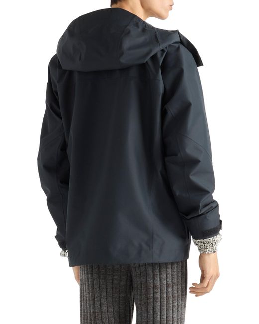 Oversized fit Hooded collar Raglan sleeves Zipper closure Concealed zipper pockets Cuff with hook-and-loop strap Wide shoulder Straight hem Elasticized drawstring Unlined Heat-sealed tape seams Sartorial logo label Imported 100% Recycled Polyester - 100% PU Membrane - 100% Graphene. Lsd Rtw - Prada Rtw > Prada > Saks Fifth Avenue. Prada. Color: Black. Size: Medium.