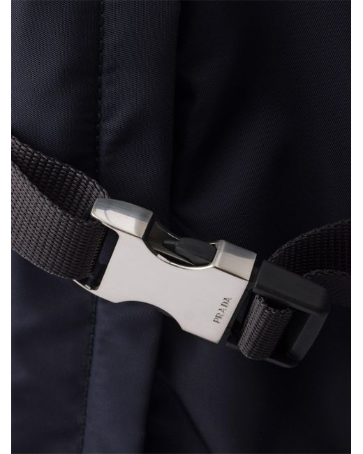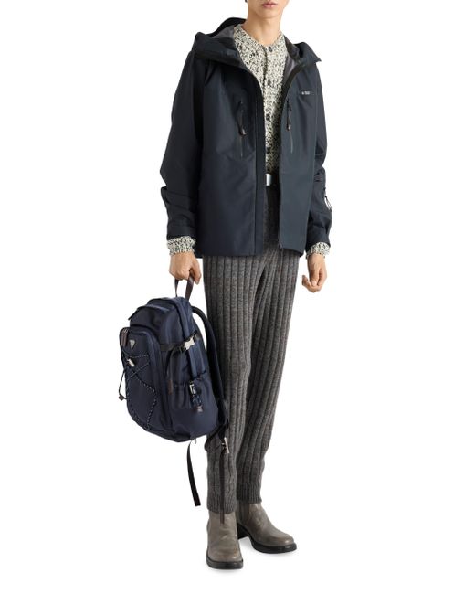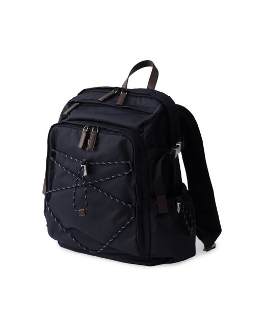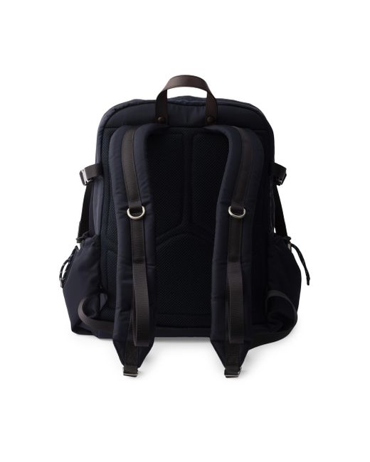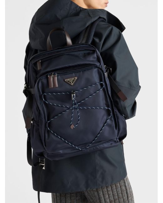 With adjustable technical cord detail Flat leather handle Adjustable fabric harness straps Enameled metal triangle logo on the front Zipper closure Three external zipper pockets One bottle pocket with drawstring Padded mesh fabric back Interior with zipper pocket and patch pocket Re-Nylon lining Imported 100% Polyamide - 100% Calf Leather - 100% Solventfree Resin Pu 29 W x 42 H x 14 L / 11.4'' x 16.5'' x 5.5''. Lsd Rtw - Prada Rtw > Prada > Saks Fifth Avenue. Prada. Color: Blue.