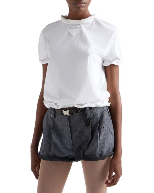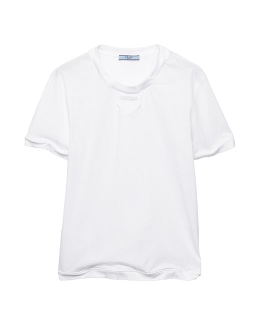 Boxy fit Ribbed knit crew neck Fabric triangle logo with sartorial logo label Shapeable neckline, sleeves and hem Imported 100% cotton. Lsd Rtw - Prada Rtw > Prada > Saks Fifth Avenue. Prada. Color: White. Size: XS.