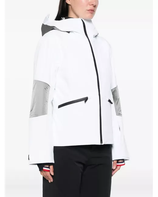 white panelled design hoodie zip fastening long sleeves elastic cuffs
