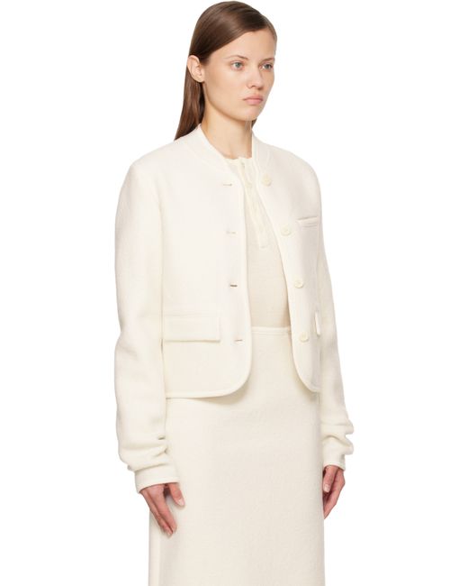 Lightweight felted wool jacket. · Stand collar · Button closure · Welt pocket at chest · Flap pockets at waist · Corozo hardware Supplier color: White felted