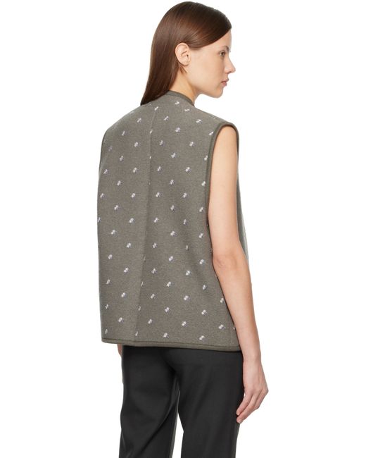 Lightweight felted wool vest. · Floral pattern embroidered throughout · Stand collar · Button closure · Welt pockets · Corozo hardware Supplier color: Camoscio flowers