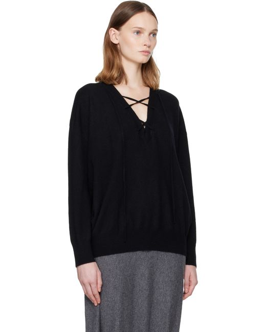 12-gauge knit cashmere sweater. · 210 g · Rib-knit plunging V-neck, hem, and cuffs · Lace-up detailing at collar · Dropped shoulders Supplier color: Black