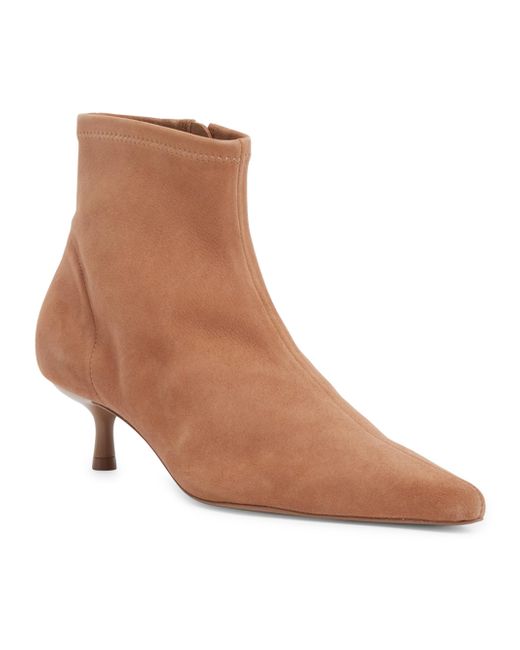 These Joni ankle booties from SIMKHAI are crafted of soft suede and designed with a 45mm kitten heel. Point toe Side zip closure Suede upper Leather sole Imported SIZE Kitten heel: about 1.75" (45mm). Women's Shoes - Workshop Shoes > Simkhai > Saks Fifth Avenue. SIMKHAI. Color: Camel. Size: 7.