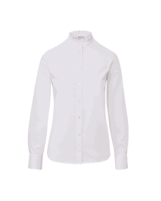 A feminine take on the tailored button-down shirt. Crafted from premium stretch cotton, the Bays features a classic button placket and band collar with a delicate ruffled trim. Cuffed sleeves and a curved hem complete the design. Tuck into denim for laid-back polish, or style with trousers for a chic office look.67% Cotton, 30% Polyamide, 3% ElastaneDry clean onlyStyle #2512LSCP41453