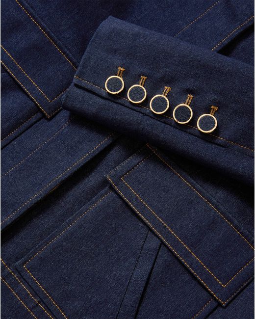 The denim jacket, refined with a hint of glamour. Crafted from our signature Stretch Denim Tailoring in dark-wash blue, the Barrington features a boxy, cropped silhouette and a luxe, crystal-embellished collar-removable for styling versatility. A single-button closure accents the clean, hidden placket, while oversized flap pockets add utilitarian edge. A chic layer to complete any look, it pairs well with matching dark-wash denim and tailored bottoms alike.75% Cotton, 23% Polyester, 2% ElastaneLining: 100% CuproDry clean onlyStyle #2512NV2611453