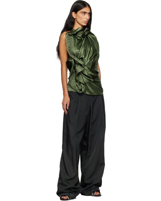 Overdyed nylon twill trousers. · Concealed drawstring at elasticized waistband · Three-pocket styling · Zip fly · Pleats at front Supplier color: Dark green