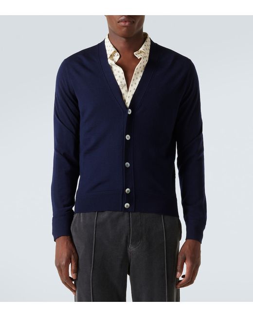 Material: 100% wool. Care instructions: hand wash. Made in Italy. Designer color name: Navy Blazer. Item color: blue. Contains non-textile parts of animal origin. Closure: buttoned front. Cuff: ribbed. Hem: ribbed. Wool.