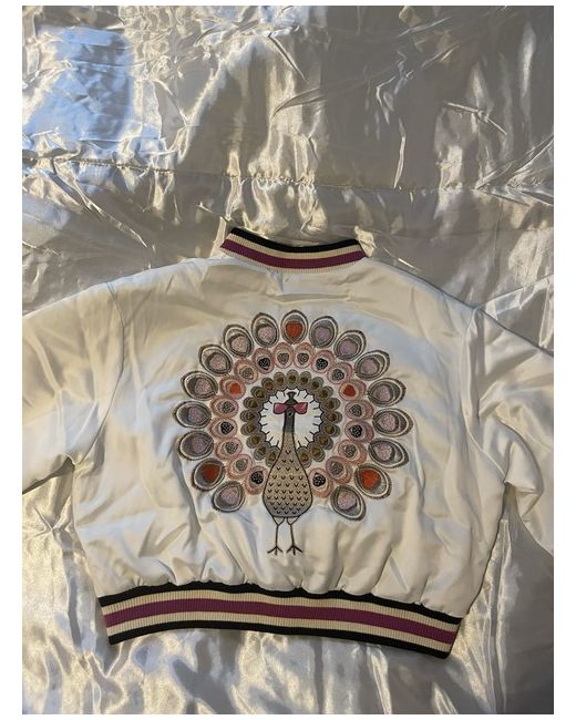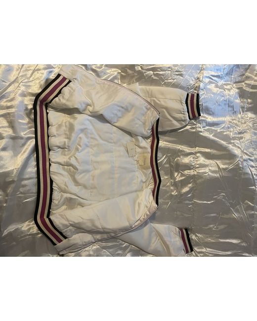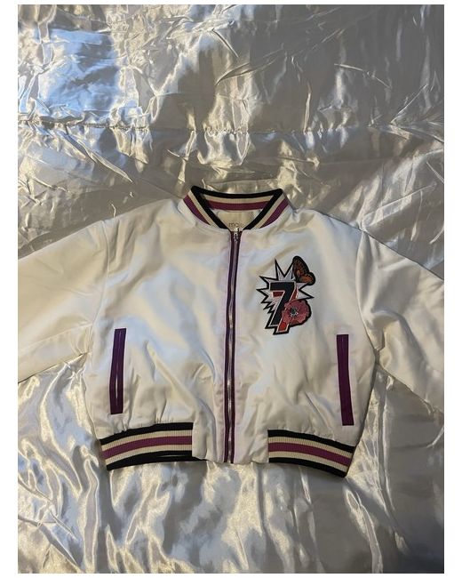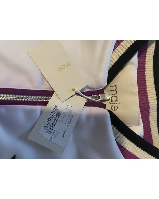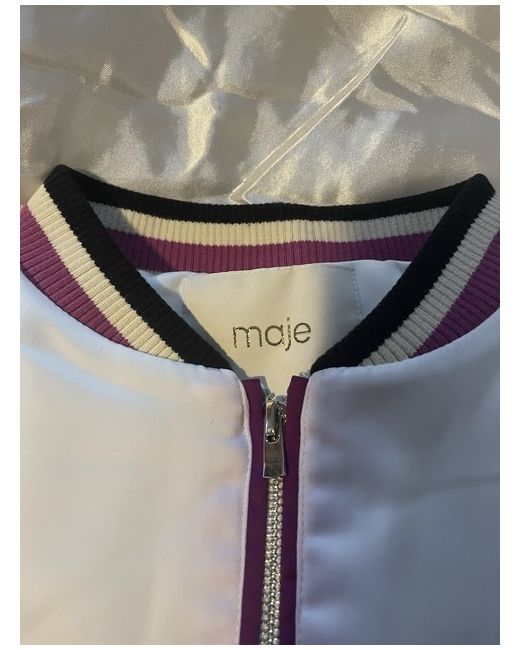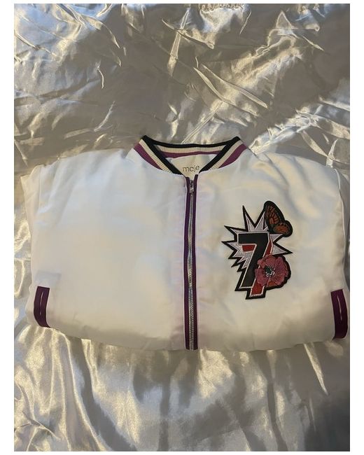 The Maje Cropped Jacket in White is a stylish and versatile addition to any woman's wardrobe. Made from 100% silk, it offers a luxurious feel and is perfect for casual occasions during the autumn season. The regular fit and basic jacket style make it a timeless piece that can be worn for years to come. This jacket is a great choice for those looking for a chic and elegant outerwear option that is both fashionable and practical. Size 40