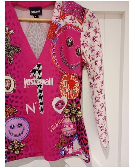 This Just Cavalli Women's Statement Top in Pink is a stylish and versatile addition to any wardrobe. The top features a flattering V-neckline, long sleeves, and a regular fit, making it perfect for casual occasions during the summer season. Made from a blend of polyamide and elastane, this top offers comfort and a touch of stretch for ease of movement. With its bold pink colour and basic style, this top is a must-have for those looking to make a fashion statement.