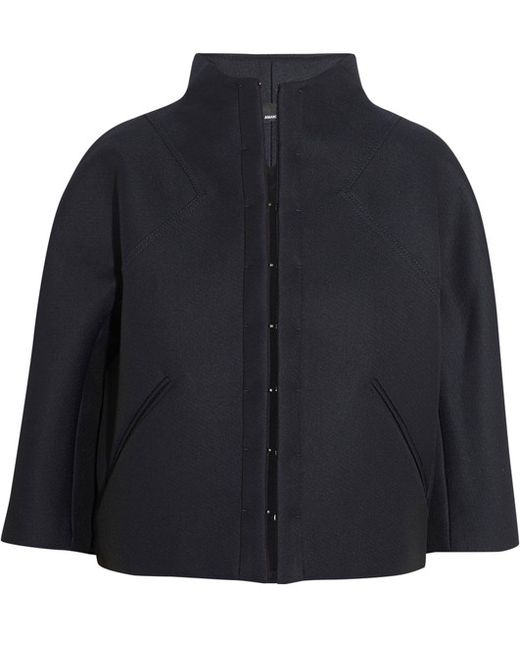 AMANDA WAKELEY NAVY BOXY JACKET – RRP £495. Sophisticated cropped jacket from British luxury designer Amanda Wakeley, crafted from a structured wool-blend fabric with a techno coating finish for a refined, sculptural silhouette.