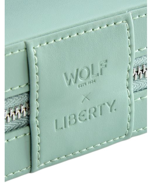 From the Liberty Collection. Heritage, design, and craftsmanship meet practicality with the Wolf x Liberty medium jewelry zip case, handmade with an embossed Liberty Ianthe pattern design. With space for rings, earrings, necklaces, and a removable zip pouch, this compact piece is perfect for travel, bringing timeless design and thoughtful craftsmanship on the go. The Lusterloc interior allows the fabric lining the inside of the jewelry case to absorb the hostile gases known to cause tarnishing. Includes earring tab (holds six pairs of studs), ring tab, internal zip pouch, removable zip pouch, three snap-on necklace holders with pocket Zip closure Textile/ultrasuede Imported SPECIFICATIONS About 8.25"L x 5.5"W x 2.75"H. Home - Frames And Leather Acces > Wolf > Saks Fifth Avenue. Wolf. Color: Sage.