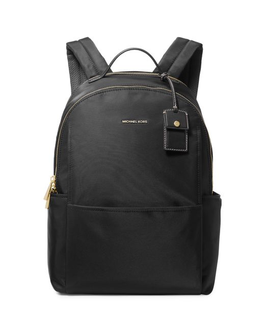 This large Sable backpack from MICHAEL Michael Kors features adjustable backpack straps and a top handle detailed with a tag. Top handle Adjustable backpack straps Exterior: three slip pockets Interior: two slip pockets Double top zip closure Nylon Lining: mesh polyester Imported SIZE About 10.75"W x 15.5"H x 5.25"D. Handbags - Contemporary Handbags > Michael Michael Kors > Saks Fifth Avenue. MICHAEL Michael Kors. Color: Black.