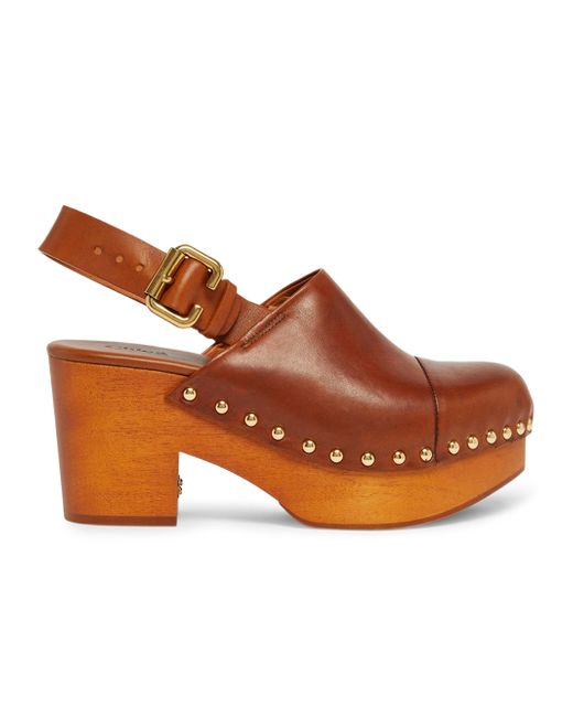 Made in Italy, Chloé's Jeannette clogs are crafted of smooth leather and sit on an 80mm wooden block heel. Cap toe Buckle closure Leather upper Leather lining TPU sole Made in Italy SIZE Block heel: about 3.20" (80mm). Women's Shoes - Chloe Womens Shoes > Chloé > Saks Fifth Avenue. Chloé. Color: Brown. Size: 8.