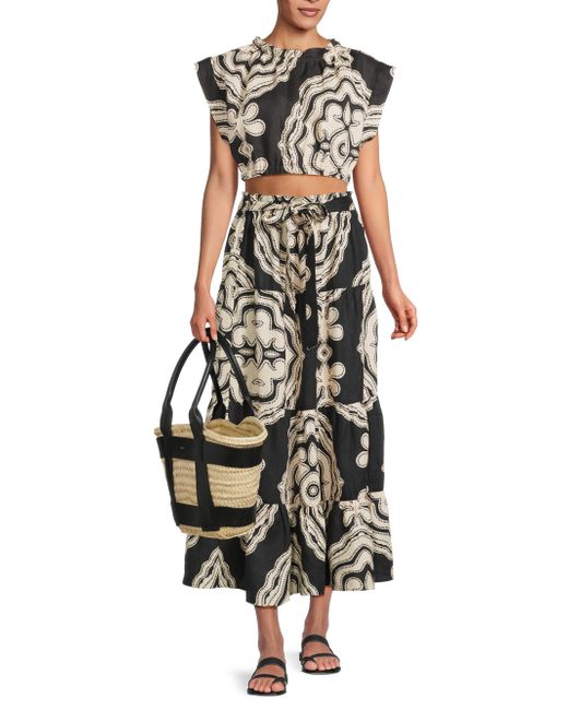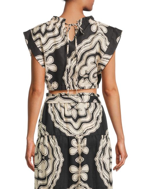 This Muna cropped top from Lemlem is crafted of printed linen and features a ruffled neck, dolman sleeves, and an elasticized waist. Made with responsibly sourced and traceable linen Ruffled neck Dolman sleeves Elasticized waist Back tie closure 100% responsibly sourced and traceable linen, exclusive of trim Dry clean Imported SIZE & FIT About 14.5" from shoulder to hem Model measurements: 5'9" tall Model is wearing a US size Small ABOUT THE BRAND A resortwear brand driven by artisans, lemlem was created with the mission to preserve local weaving traditions in Ethiopia and inspire economic growth throughout Africa. Meaning "to flourish" in Amharic, lemlem brings its positive spirit into handwoven warm-weather clothing, infusing vibrant colors and punchy prints-including signature stripes-into its pieces. Outerwear And Swimwear - Contemporary Swim > Lemlem > Saks Fifth Avenue. lemlem. Color: Niku Black. Size: Small.