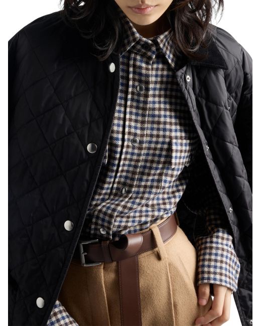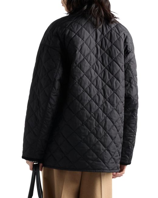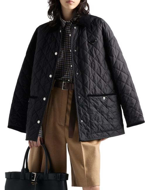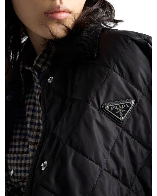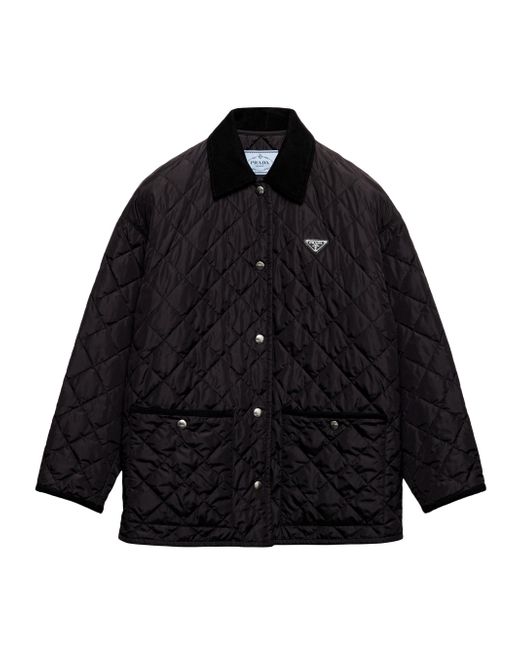 The pragmatic design of this quilted jacket reinterprets a classic silhouette with a contemporary cut enriched with refined touches. Made of Re-Nylon, the innovative regenerated nylon fabric that is distinctive of Prada collections, the jacket is embellished with a collar and trim in contrasting corduroy. The enameled metal triangle logo adds an iconic note to the versatile style with refined details. Unlined Shirt-style collar Long sleeves Straight cuff Snap closure Enameled metal triangle logo Quilted external fabric Corduroy collar and pocket and sleeve trim Regular fit, the garment fits the indicated size Made in Italy SIZE 75.0 H. Lsd Rtw - Prada Rtw > Prada > Saks Fifth Avenue. Prada. Color: Black. Size: 12.