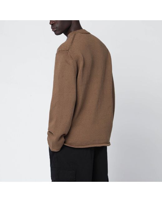 OAMC dark beige cotton sweater featuring long sleeves, zip details on the shoulders and ribbed crew neck.