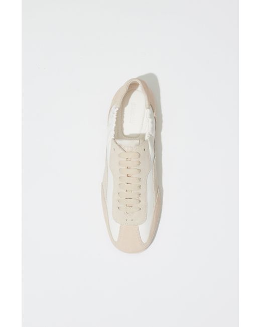 PRE SPRING 2026 WOMEN'S COLLECTION The Georgie Leather Combo Sneaker in Cream Made in soft leather and trimmed with contrast suede, this sneaker features a classic lace-up front and low, cushioned sole. The silhouette is minimal yet substantial, designed for day-to-day wear with elevated finish. SIMKHAI Women's Georgie Leather Combo Sneaker in Cream, Lace, Size 36