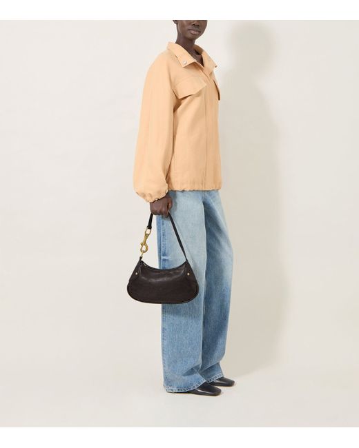Mulberry fuses its affinity for equestrian codes with its British roots in the design of the Hackney shoulder bag. Named after the borough in East London, this slouchy style is handcrafted from smooth leather and adorned with gold-tone hardware that recalls the look of horse saddles.