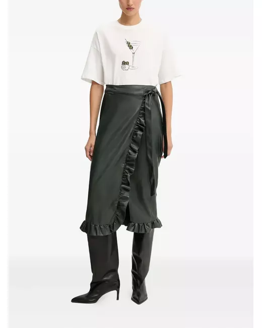 Ruffled-detail wrap midi skirt