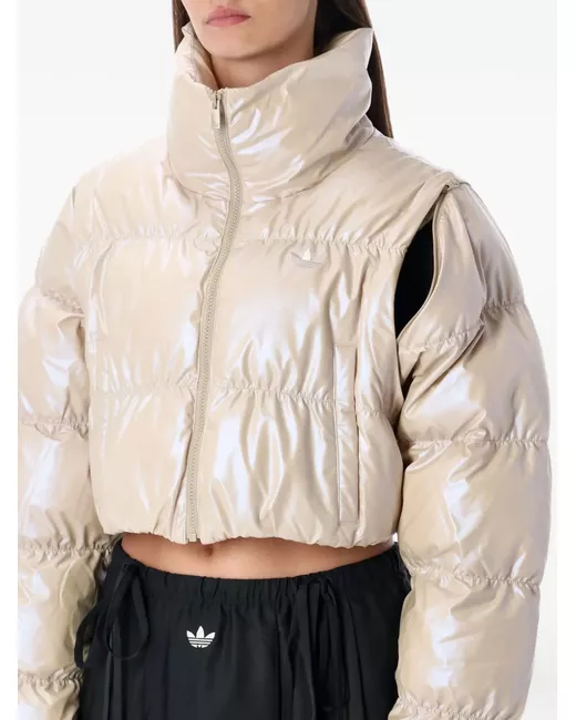 beige padded design high neck front zip fastening long sleeves front zip pocket