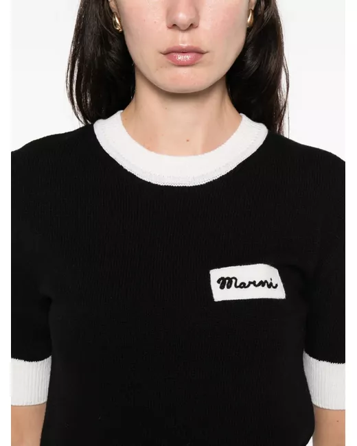black logo detail short sleeves round neck ribbed hem ribbed cuffs