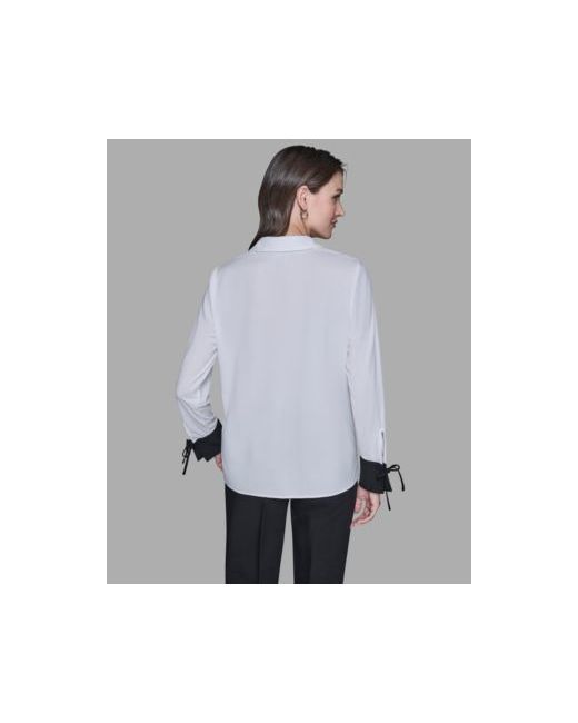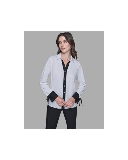 Women's White Contrast Collared Top black