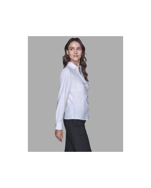 Tailored with a cinched waist, this collared long-sleeve top from Karl Lagerfeld Paris features a button-front closure. The hip-length silhouette offers a structured and polished look.