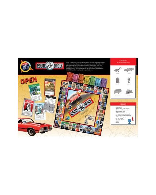 Get your kicks on Route 66 as you travel America's Mother Road visiting all the most iconic stops, with Route 66 Opoly! Play on an authentic, retro style game board featuring throwbacks to Route 66's funky architecture, tasty diners, and wacky sights.
