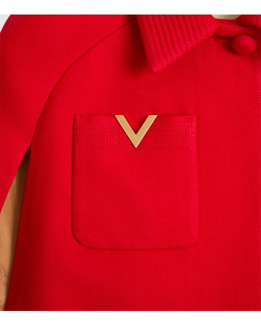 Cut with couture finesse, each piece from Valentino is meticulously crafted to offer a vision of polished femininity, as expressed here in this cape. Infused with silk, its wool construction is tailored to perfection, with sleek lines denoting its ladylike presence.