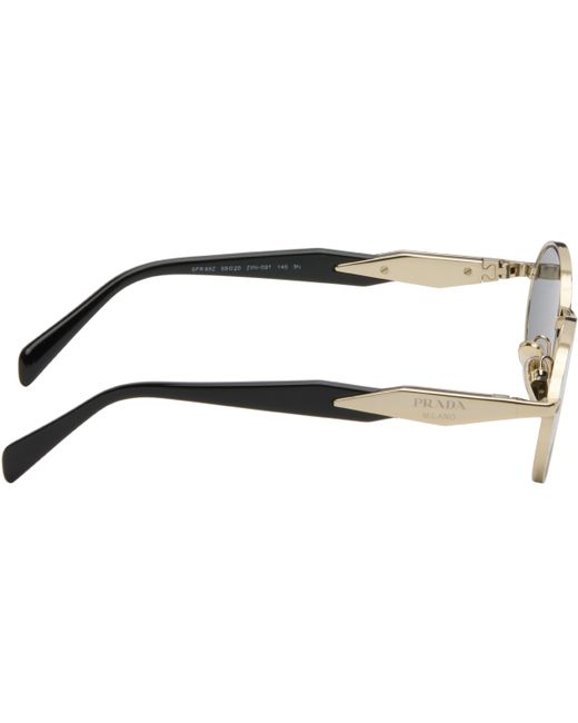Oval metal-frame sunglasses. · Gray lenses · 100% UVA/UVB protection, category 3 · Logo etched at lens · Adjustable rubber nose pads · Logo etched at temples · Black acetate trim at temple tips · Includes case · Size: 55.20 140 Supplier color: Pale gold/Dark grey