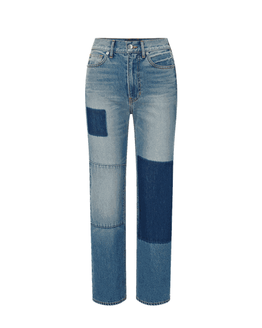 The Dylan-reimagined. In a softly faded classic blue wash, this high-rise, straight-leg jean features contrast patchwork details along the front leg and back pockets. Made in LA from non-stretch Japanese denim, its ankle-length cut pairs effortlessly with everything from flats to heels. Tuck in a white tee for off-duty cool-then add a blazer for instant polish.100% CottonMade in LA from premium Japanese denimTurn inside out and wash with cold water. Hang to dry.Style #J25121681306TL