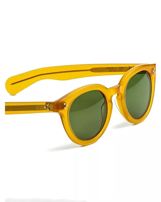 yellow round frame textured arms pin detail nose pads tinted lenses These glasses come with a protective case.