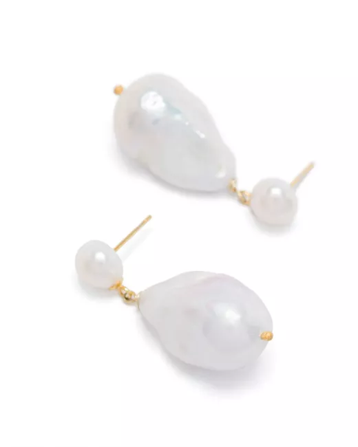 gold-tone post-back fastening baroque pearl These earrings come as a pair. Pearls should be the last thing that you put on in the morning and the first thing you take off at night. Avoid contact with perfumes or creams, and simply wipe with a soft cloth to clean.