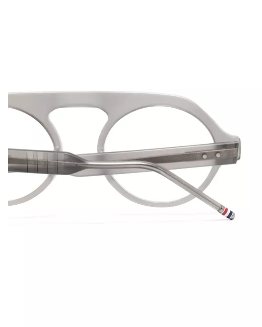 light grey acetate matte effect round frame clear lenses raised bridge signature 4-Bar stripe debossed to the arm straight arms with curved tips RWB stripe to the tips These glasses come with a protective case. All glasses from FARFETCH are sold as non-prescription frames.