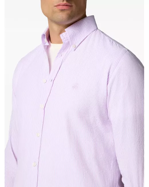 light purple buttoned collar long sleeves embroidered logo front button fastening all-over stripe pattern