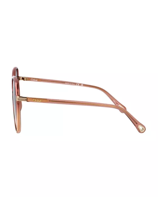 light pink oversized frame tinted lenses nose pads logo detail at the temple gold-tone hardware These glasses come with a protective case.