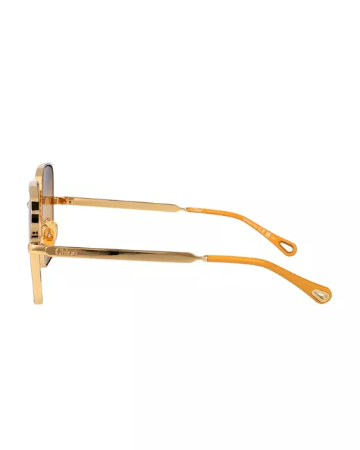 gold square frame nose pads metal arms logo detail temple tips These glasses come with a protective case.