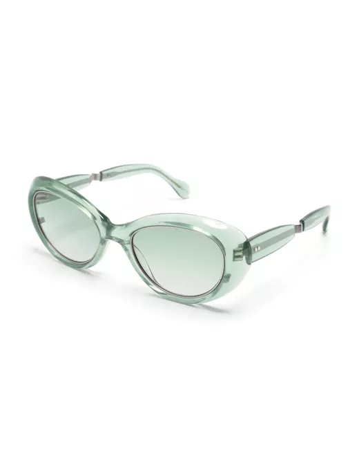 eucalyptus green acetate transparent design cat-eye oval frame green tinted lenses UV-protective lenses silver-tone hardware to the arm sculpted arms with curved tips These glasses come with a protective case.