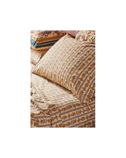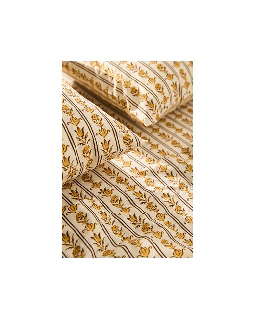 This sheet set features a lightweight and breathable finish for the most pleasant night's sleep. Just like your favourite buttondown, organic cotton percale is crisp and refreshingly cool. Made with maximalists and wanderers in mind, this only-at-Anthro collection from MINDTHEGAP is rooted in the crafts and traditions of Transylvania. Competition: A pattern embodying the formality of fine portraiture, each hand-sketched head is decorated by British flora, with delicate roses, thistles, and ferns entwined in the extravagant frame. Incantation: Exotic birdlife, ornamented horses, and mythical dragon-like animals are surrounded by striking flora and architectural figures. Edelweiss: The delicate star-shaped flower is framed in an embroidery ring, intertwined with oak leaves and edged by lacy borders, the green and red color ways make the painterly pattern sing. Organic Cotton Percale Printed Sheet Set by MINDTHEGAP in Yellow Size: Sk sht set at Anthropologie
