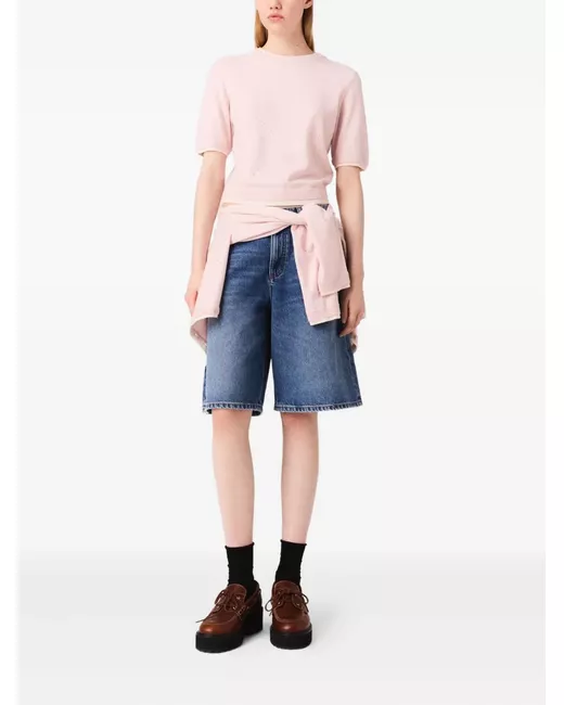 pink embellished ribbed trim short sleeves round neck back keyhole detail