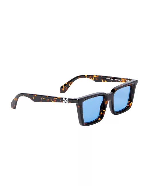 brown square frame blue-tinted lenses tortoiseshell pattern metallic Arrow logo These glasses come with a protective case.