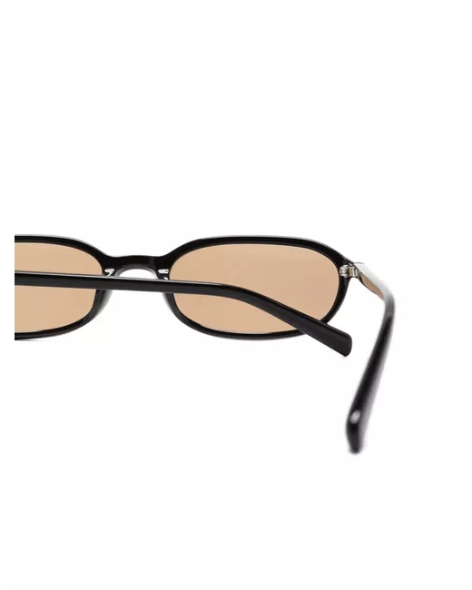 dark brown oval frame brown lenses slim arms plastic frame subtle detailing These glasses come with a protective case.