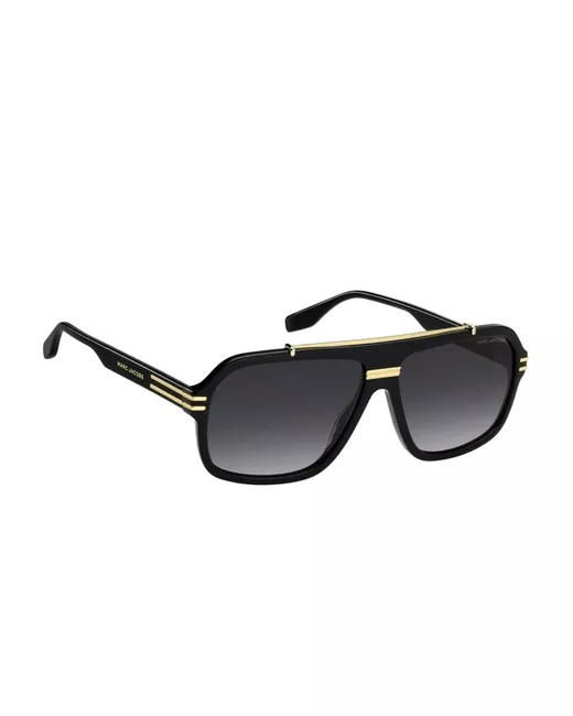 black grey shaded lenses gold-tone accents acetate frame geometric shape These glasses come with a protective case.