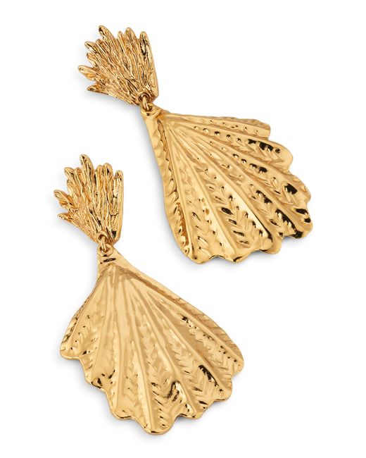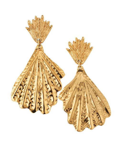 Gas Bijoux's Double Shell drop earrings are crafted with 24K-gold-plated brass and shaped with engraved detailing to a drop fan silhouette. 24K-gold-plated brass Post back Made in France SIZE About 1.4"W x 2.75"L. Fashion Jewelry - Trend Jewelry > Gas Bijoux > Saks Fifth Avenue. Gas Bijoux. Color: Gold.