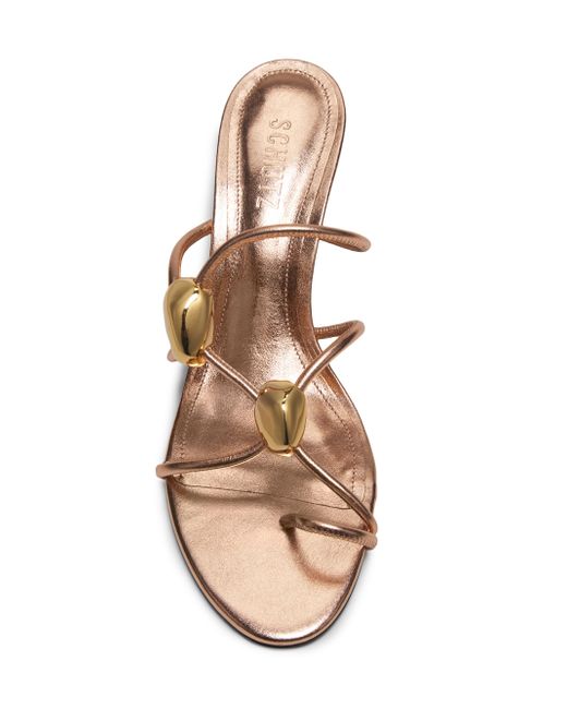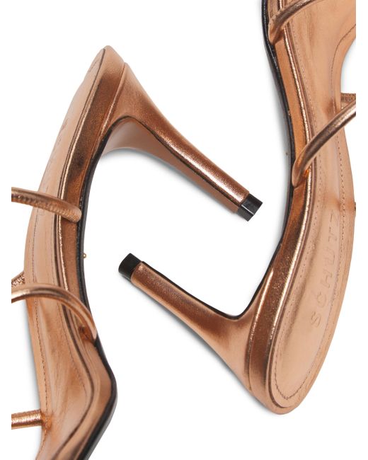 ONLY AT SAKS. Crafted of nappa leather, the Hera mules from Schutz feature goldtone hardware detailing at the strappy uppers. A stiletto heel complements this open-toe style. Open toe Slips on Leather upper Leather lining Cushioned insole Leather sole Imported SIZE Stiletto heel: about 3" (75mm). Women's Shoes - Contemporary Shoes > Schutz > Saks Fifth Avenue. Schutz. Color: Black. Size: 5.
