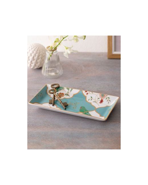 Part of the Lodi's Morning collection, this rectangular tray from Noritake features designs inspired by famous gardens in India. The piece combines striking florals with a delicate gold-tone outer edge banding for elegant serving.