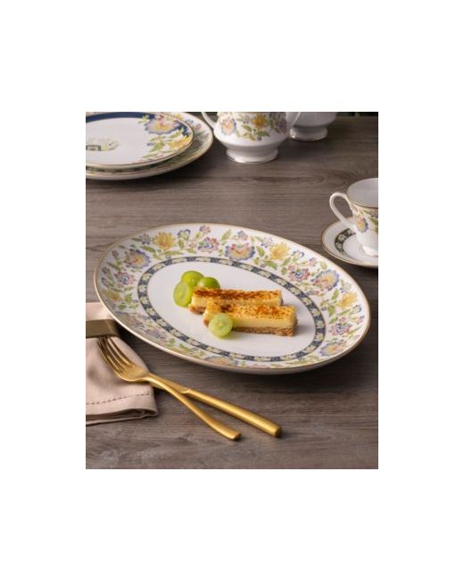 Present your dishes with style using the Noritake Tusker Garden oval platter, adorned with the collection's signature floral arabesques and elephant motifs. Its elegant design pairs seamlessly with the full tableware set for a coordinated dining experience.